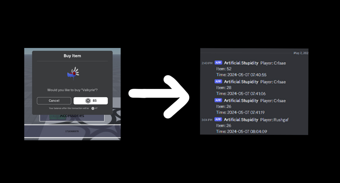 Dalam implementasinya, Discord API bekerja dengan cara menghubungkan Roblox Studio dan Roblox Marketplace ke Discord melalui Webhook. Setiap kali seorang pemain bergabung ke dalam permainan atau melakukan pembelian di Roblox Marketplace, informasi tersebut otomatis dikirim ke saluran Discord yang telah ditentukan. Dengan ini, pemantauan aktivitas pemain menjadi lebih mudah dan terpusat, memungkinkan pengelola game untuk tetap mendapatkan update secara real-time dan mengambil tindakan yang diperlukan dengan cepat.